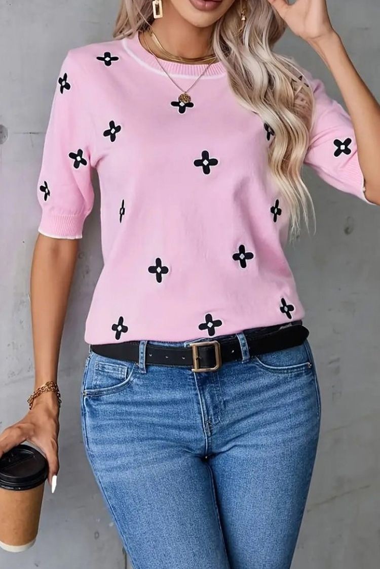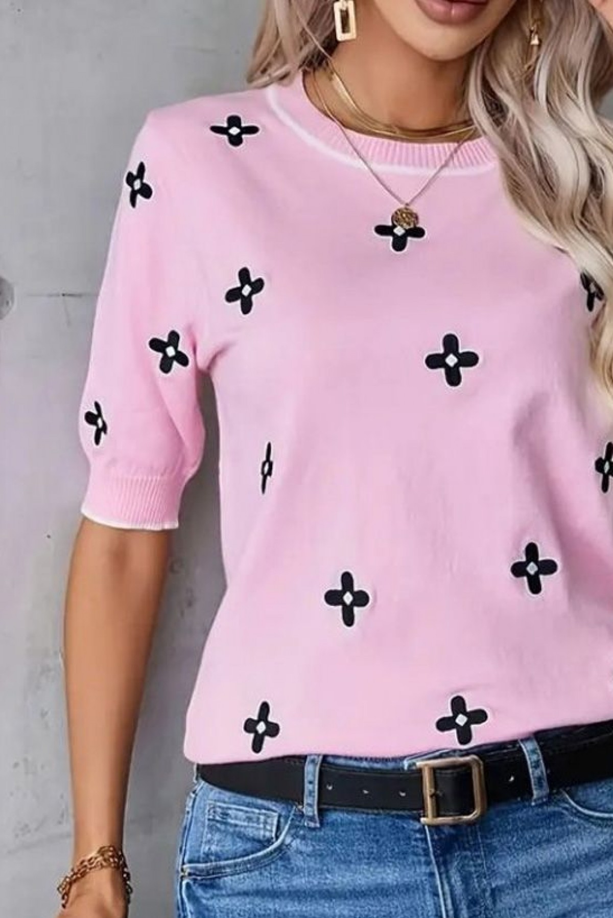 - Za svoj trendi izgled izaberite žensku bluzu sa kratkim rukavima i dezenom figure.