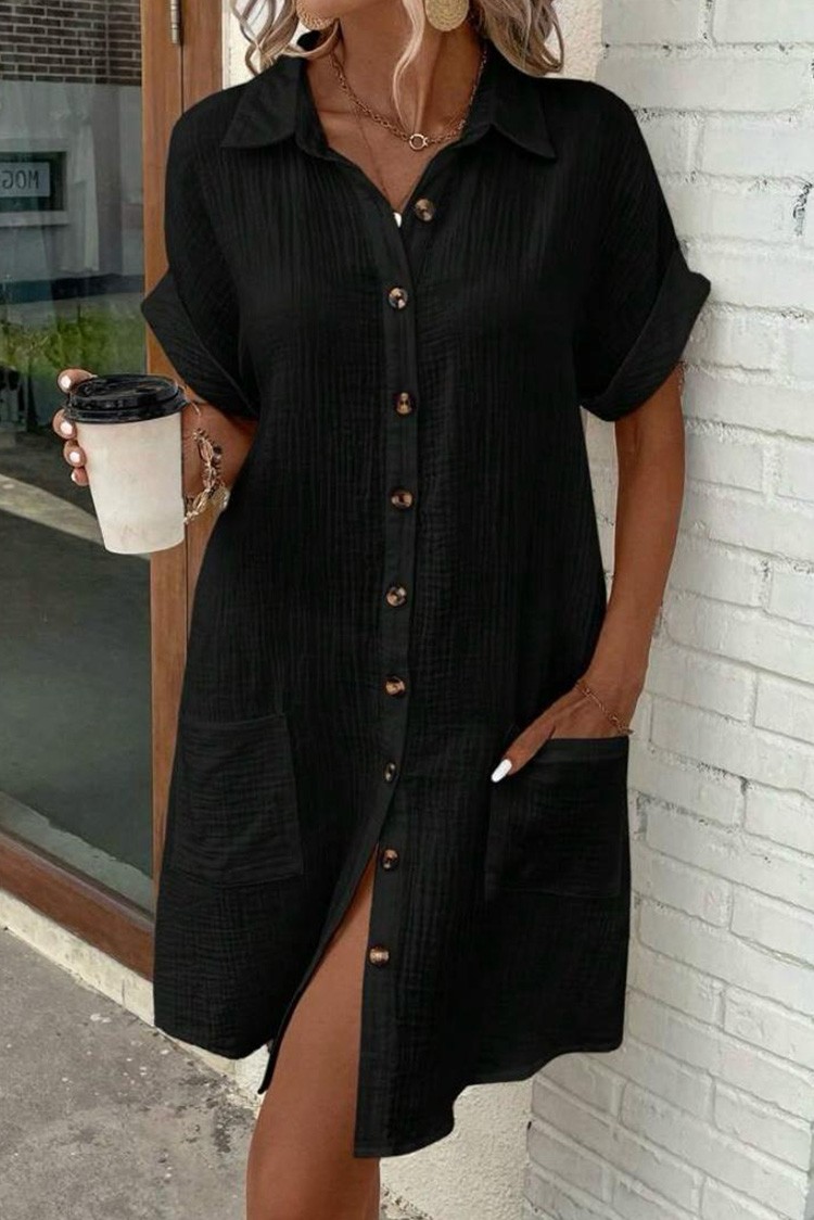 • Praktična haljina jednobojnog dezena, izuzetno pogodna za toplije dane.