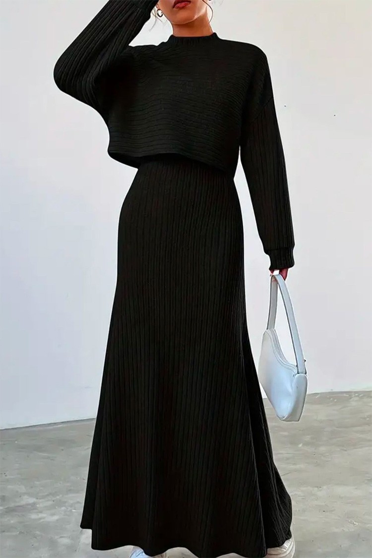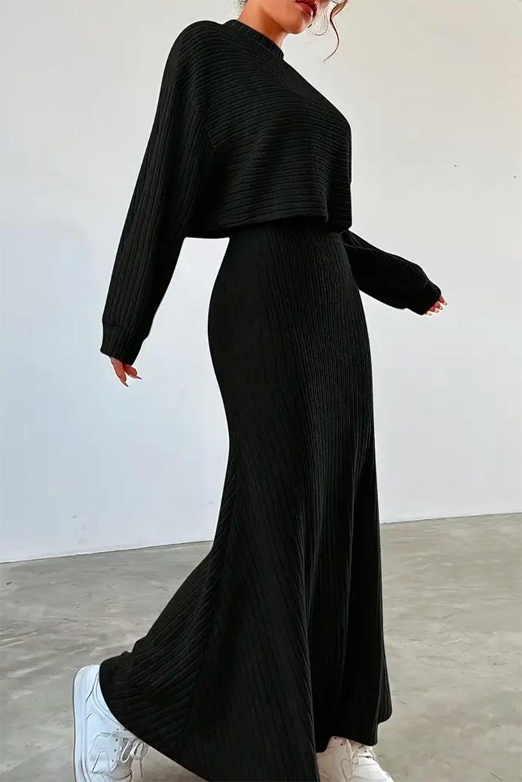 - Bluza ima duge rukave i slobodan kroj, a haljina ima udobne bretele i dugu dužinu.