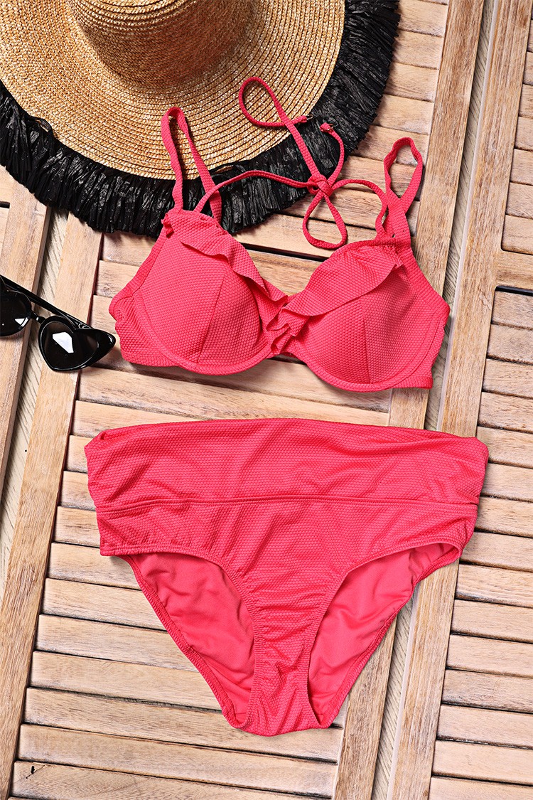 - Gornji deo ima podesive tanke bretele i čvrste korpe, kao i jednobojni dezen.