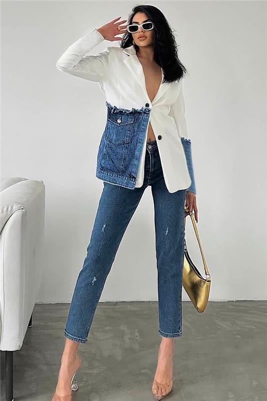 - Možete ga kombinovati sa topom, ravnim pantalonama i visokim potpeticama kako biste dobili kompletan izgled.