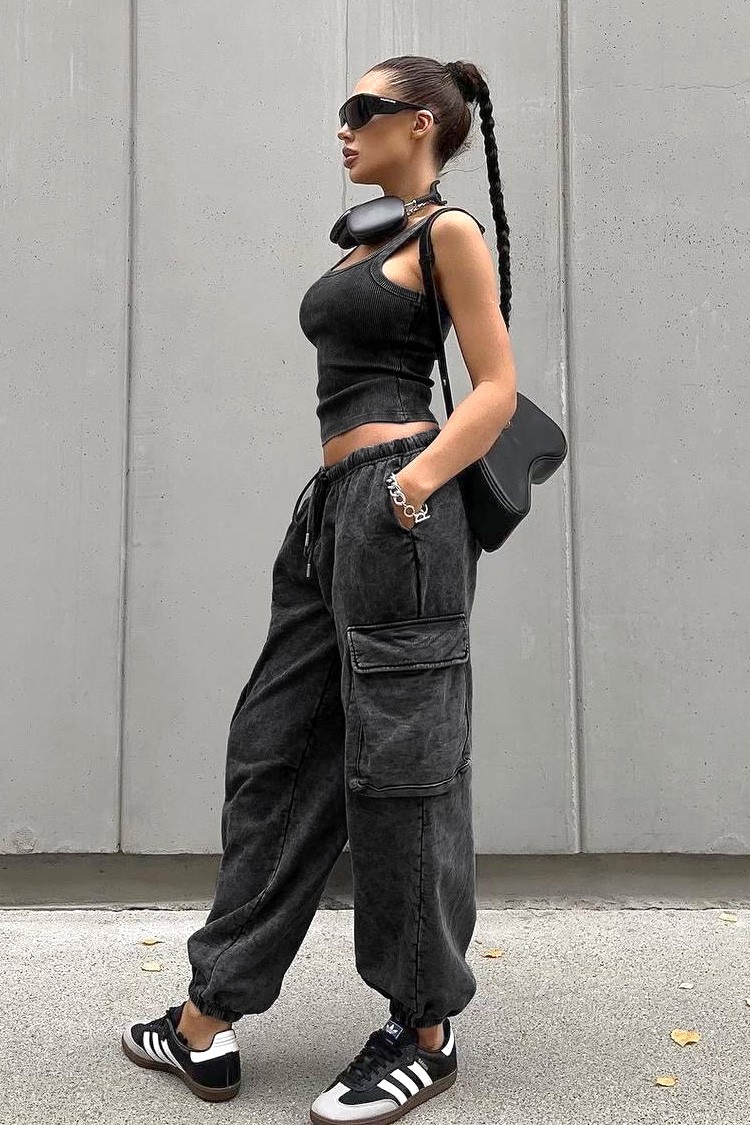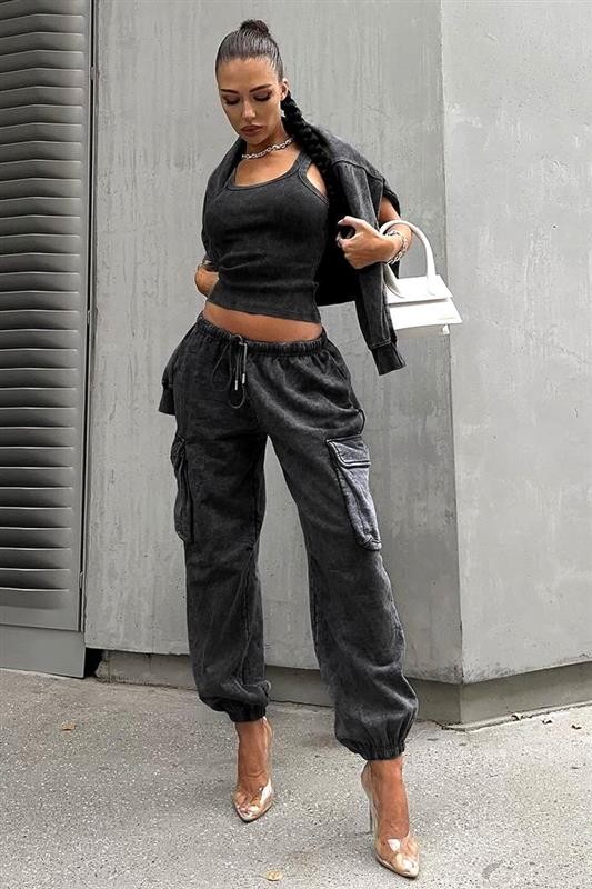 • Pantalone su srednjeg struka i imaju džepove, dukserica je klasična, a top ima ovalni dekolte u seksi dizajnu.