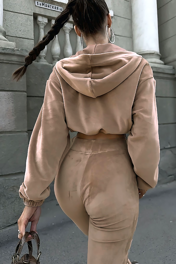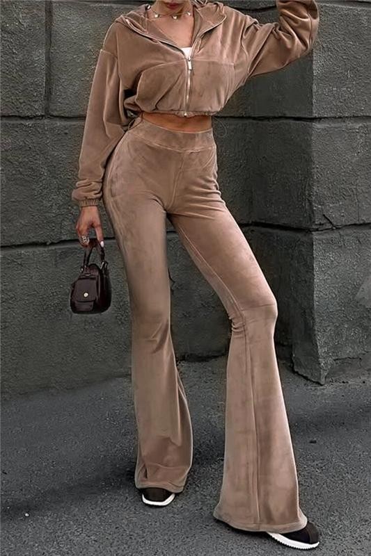 - Dukserica je skraćene dužine i ima kapuljaču, a pantalone su uske i visokog struka.