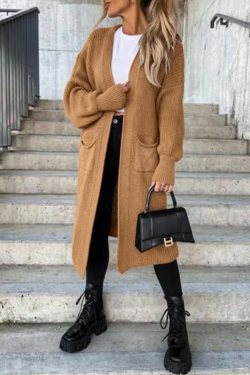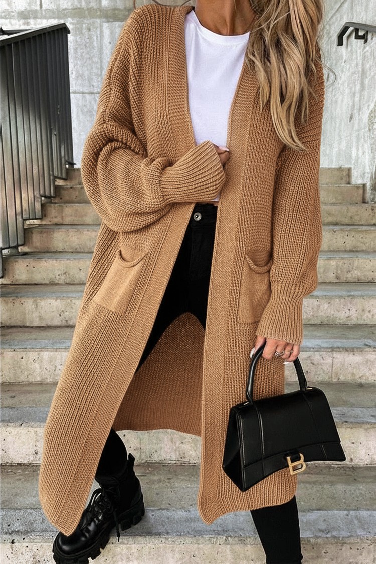 - Mekan i dugačak ženski kardigan klasičnog kroja i praktičnih džepova, pogodan za svakodnevni život.