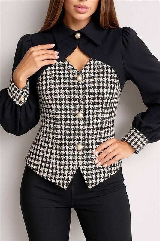 - Košulja ima duge rukave i zakopčava se efektnim dugmadima po dužini.