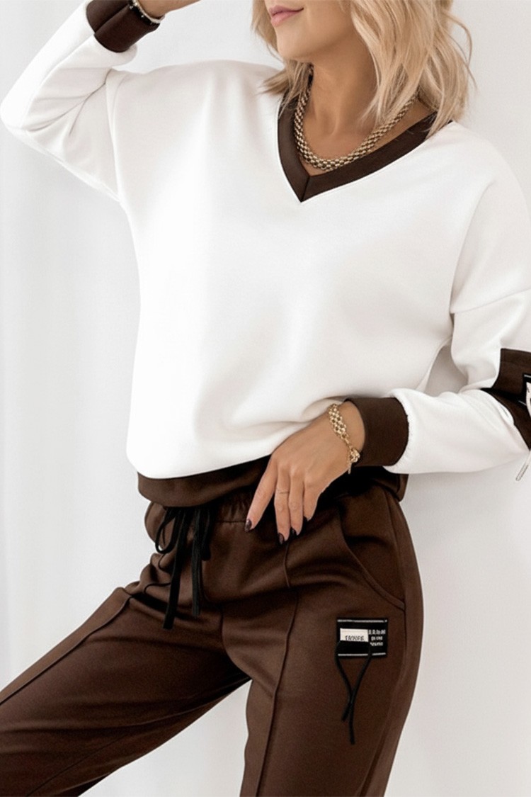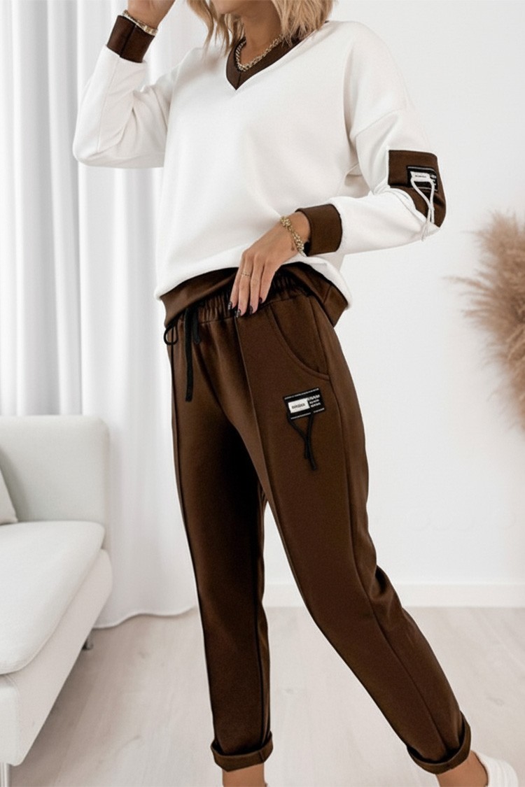 - Bluza ima duge rukave i klasičan kroj, a pantalone imaju udobne nogavice i vezice u struku.