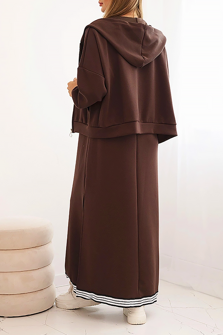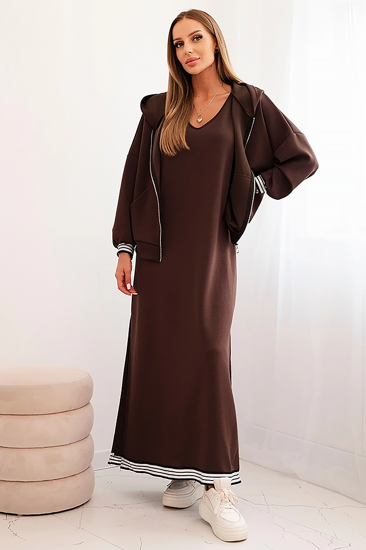 • Praktičan dvodelni komplet koji se sastoji od dukserice i duge haljine.