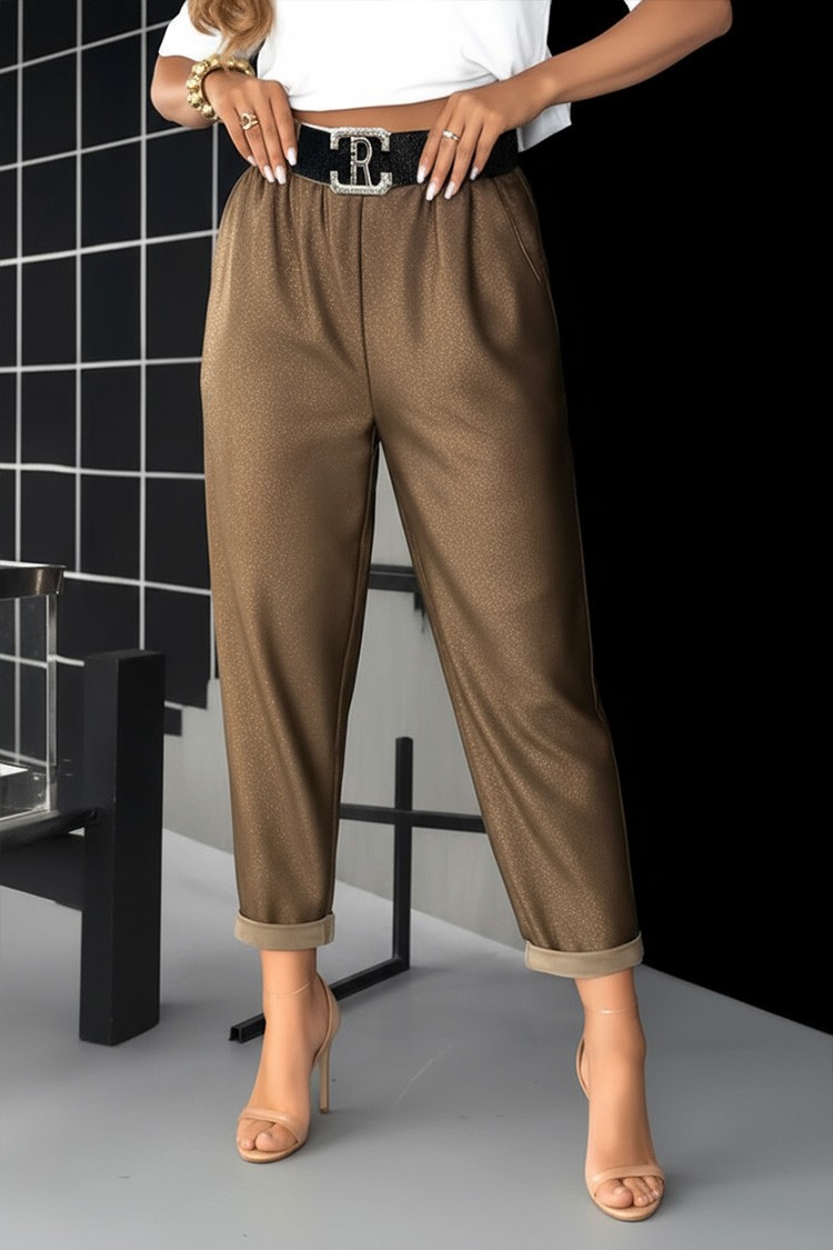 - Ženske pantalone sa visokim strukom i trendi krojem, pogodne za stilski svakodnevni izgled.