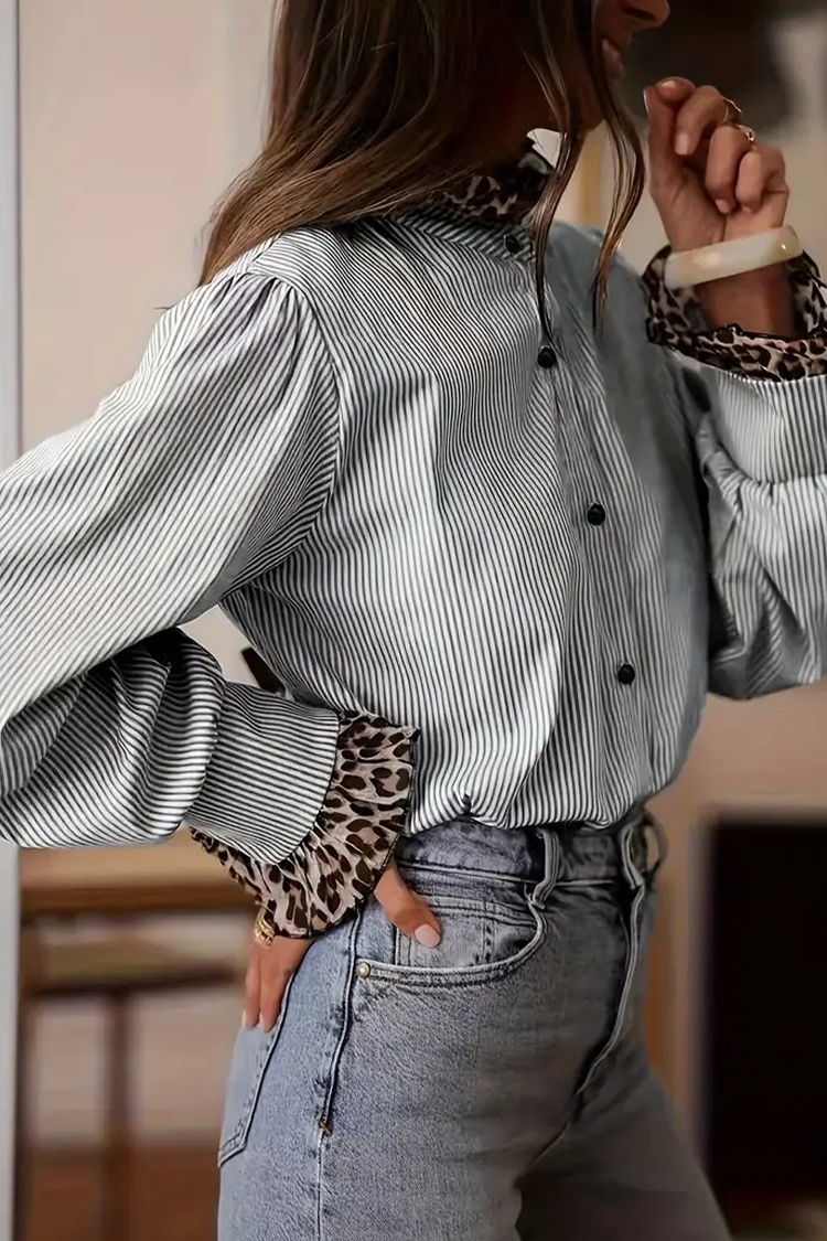 - Košulja ima duge rukave i standardno zakopčavanje na dugmad po dužini.