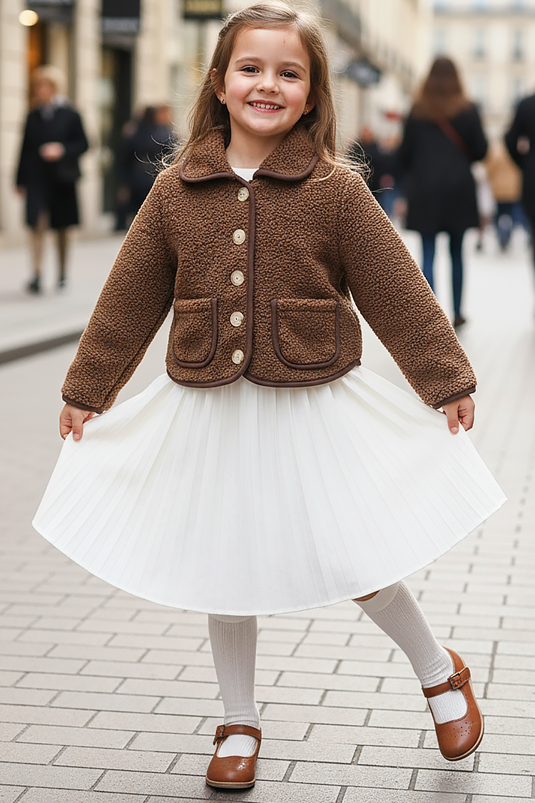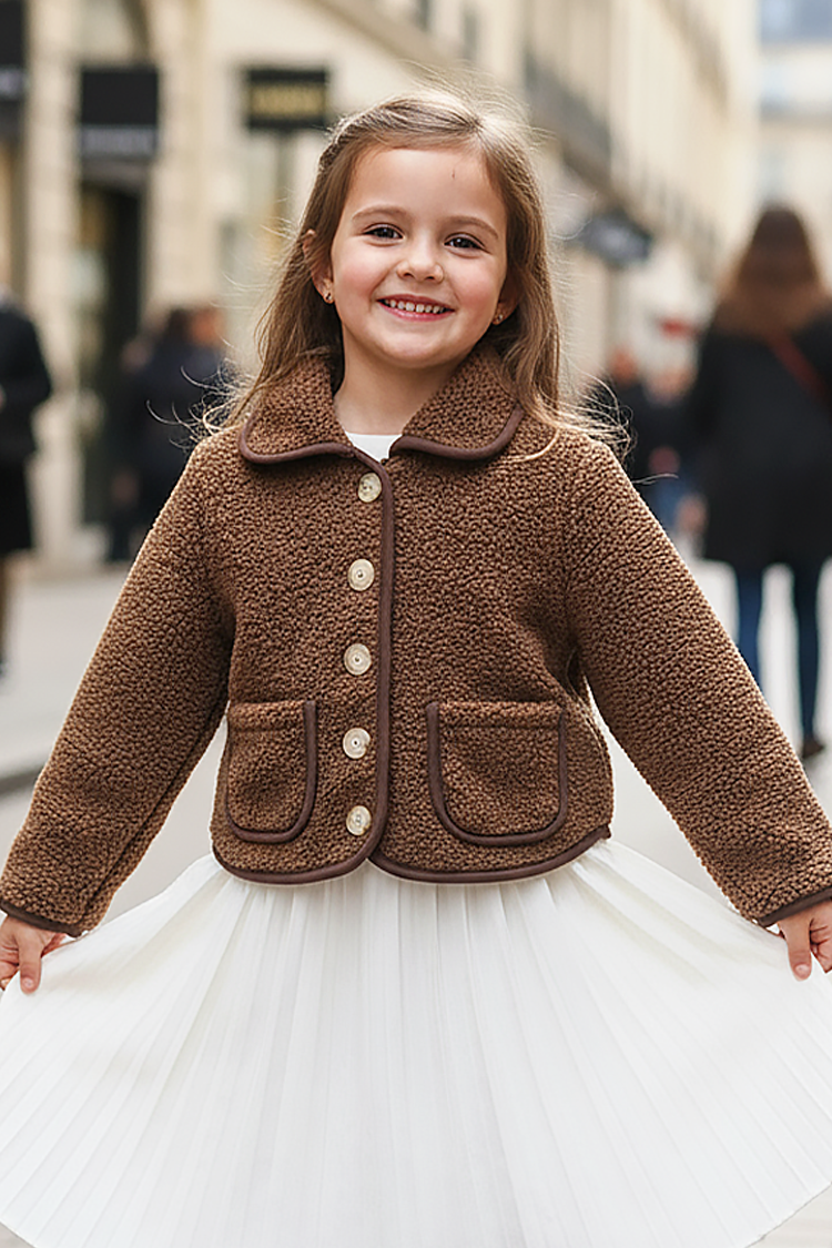 - Dečija praktična jakna za devojčice sa modernim dizajnom, udobnim džepovima i kragnom.