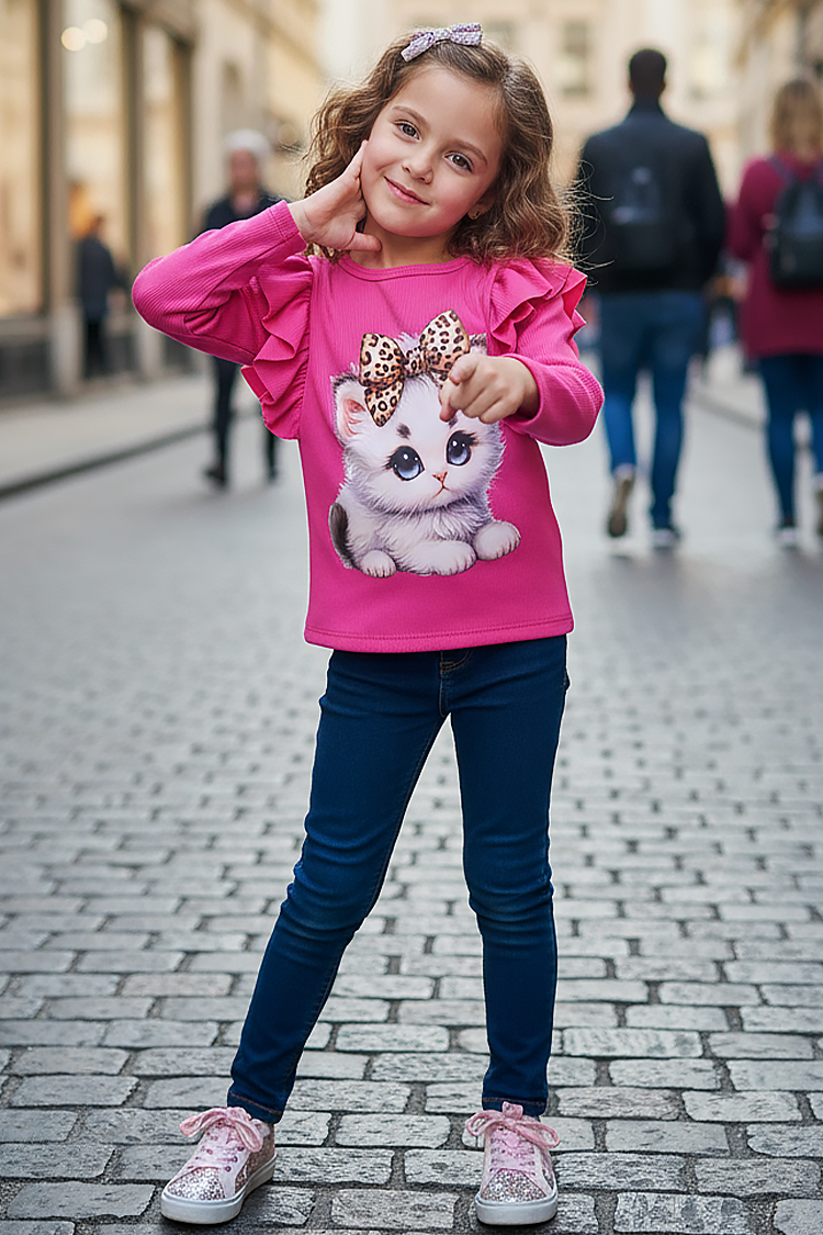 - Moderna bluza za devojčicu sa atraktivnim i trendi printom, pogodna za svakodnevni život.