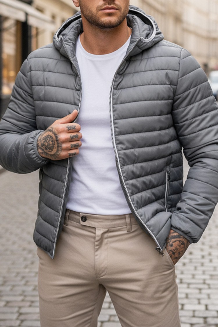 - Udobna muška jakna sa horizontalnim prošivenim dizajnom u hit boji, sportsko-svakodnevni stil.