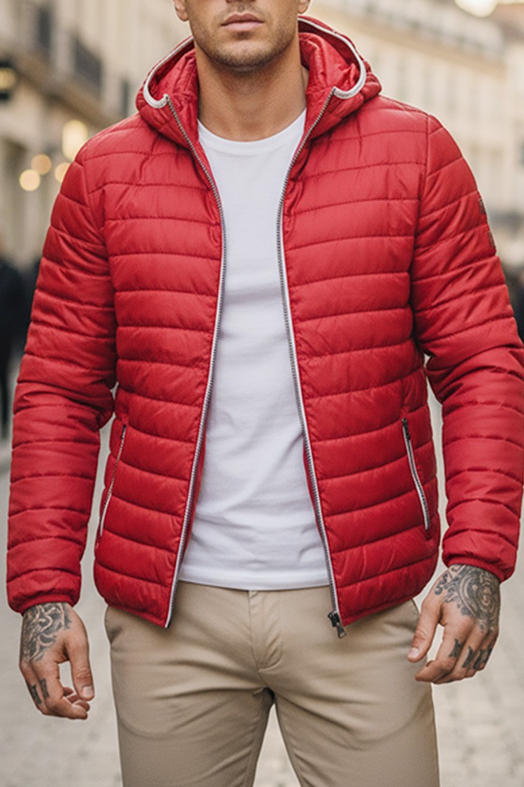 - Udobna muška jakna sa horizontalnim prošivenim dizajnom u hit boji, sportsko-svakodnevni stil.