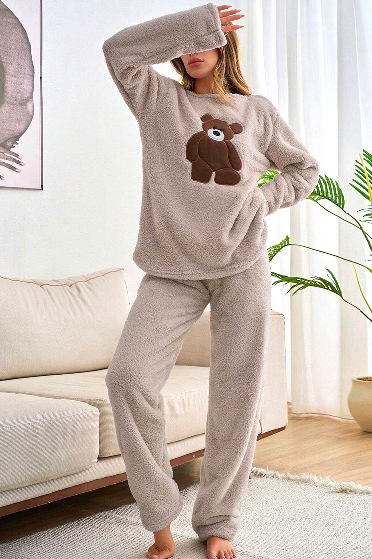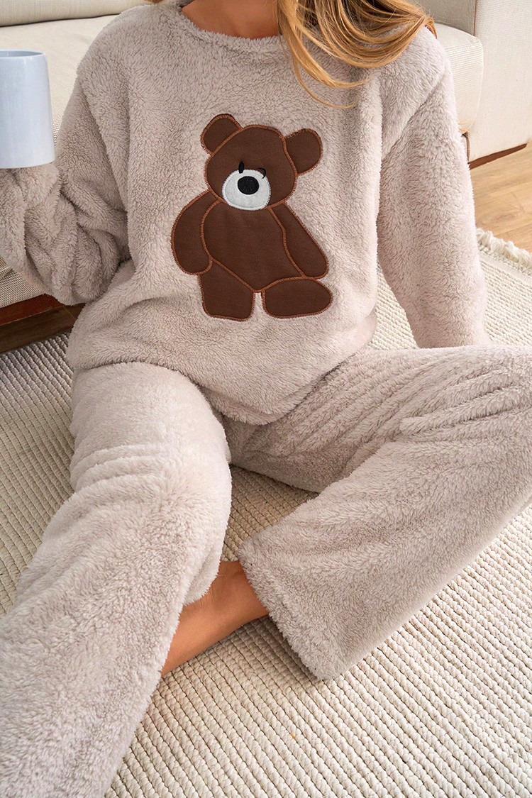 • Bluza ima efektan dizajn sa medvedićem, a pantalone imaju visok struk i širok kroj.