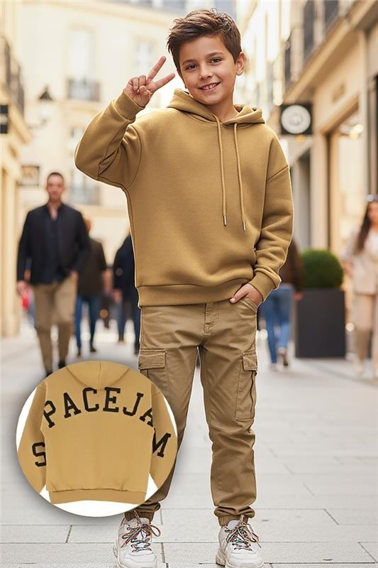 • Dečija dukserica sa modernim dizajnom, kapuljačom, efektnim natpisom i dugim rukavima.