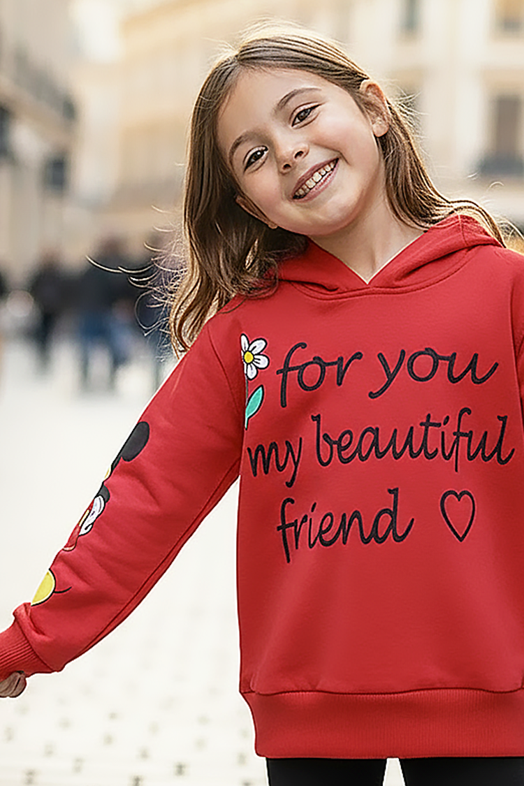 • Dečija dukserica sa modernim dizajnom, kapuljačom, upečatljivim natpisima i dugim rukavima.