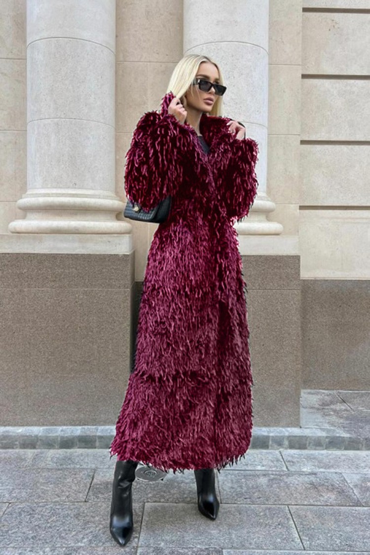 • Kaput je udobnog kroja, duge dužine i ima kaiš u struku izrađen od iste tkanine i tona.