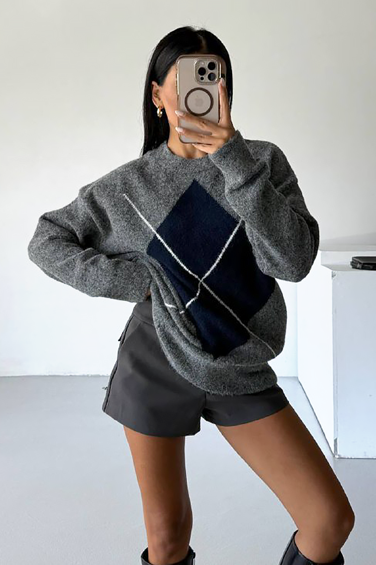 - Stilski ženski džemper sa trendi dezenom, pogodan za svakodnevni, stilski izgled!