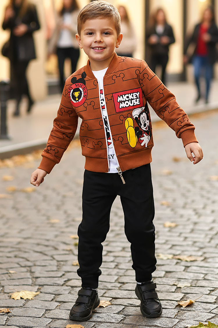 - Dvodelni dečiji komplet sa printom Mikija Mausa, koji se sastoji od dukserice i pantalona.