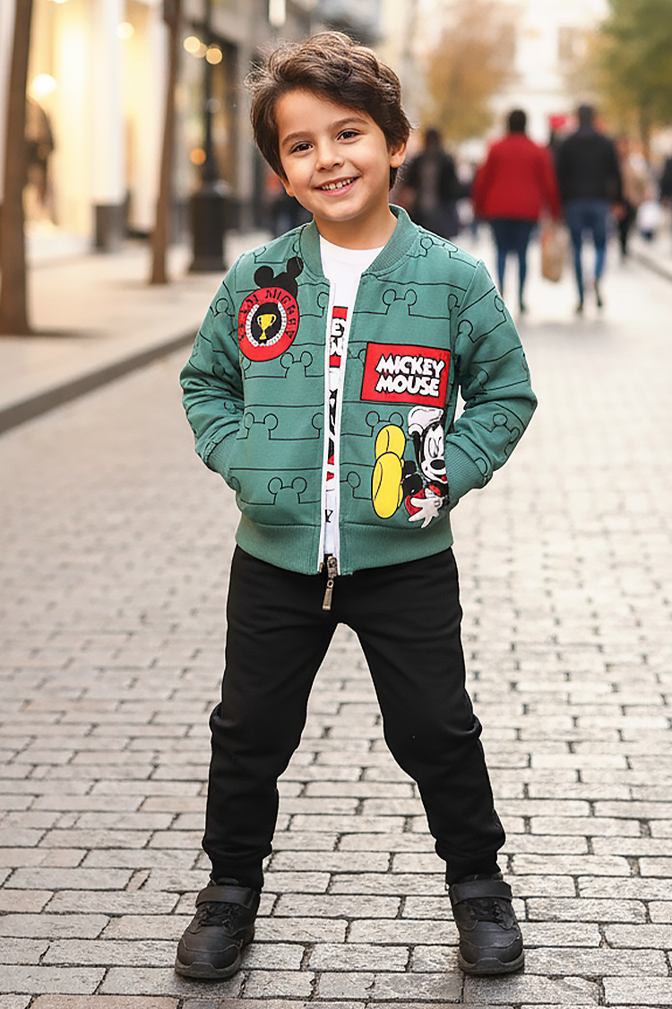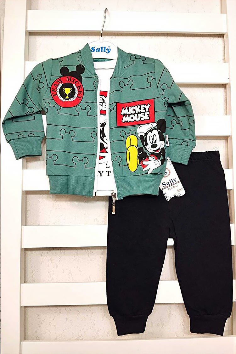 - Dvodelni dečiji komplet sa printom Mikija Mausa, koji se sastoji od dukserice i pantalona.