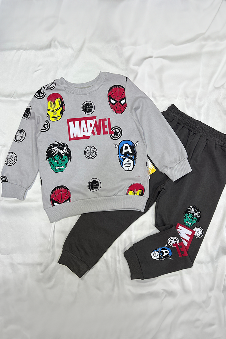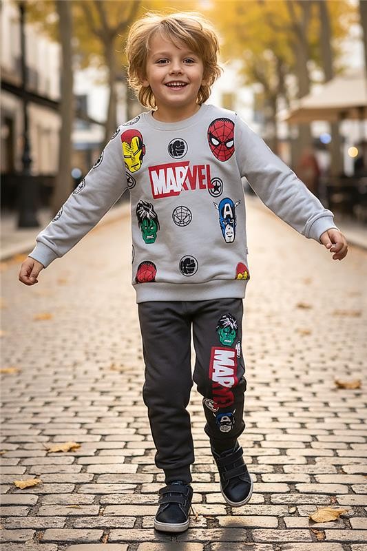 - Gornji deo ima duge rukave i Marvelov print, a pantalone imaju visok i elastičan struk.