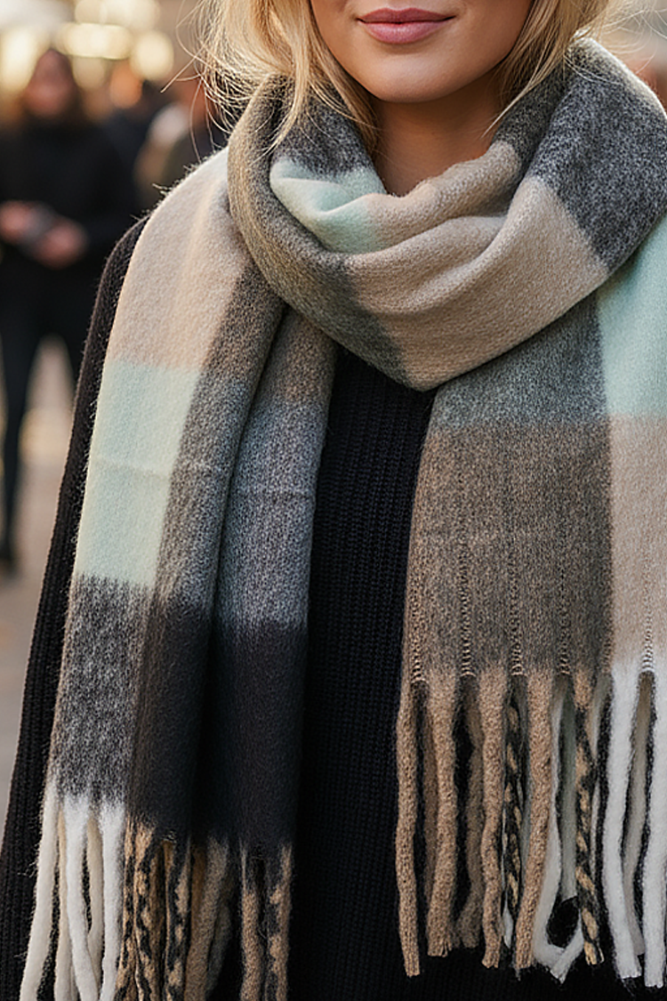 - Model ženskog šala u višebojnom dezenu koji će savršeno upotpuniti vaš stilski izgled.