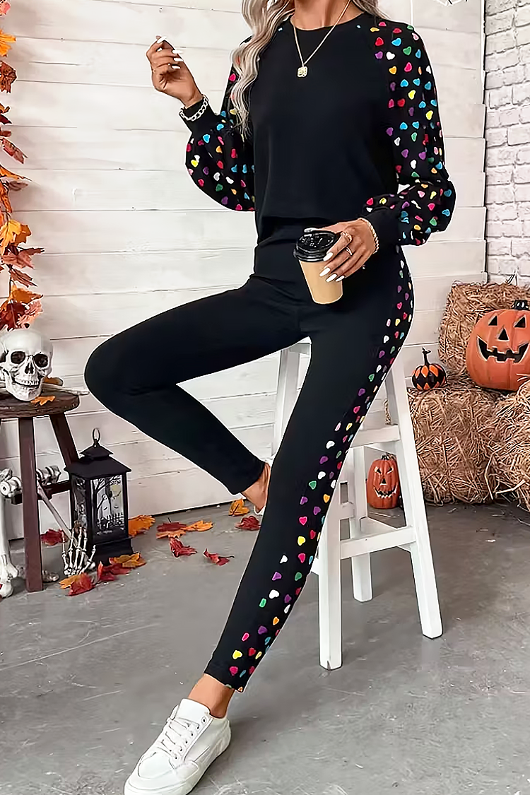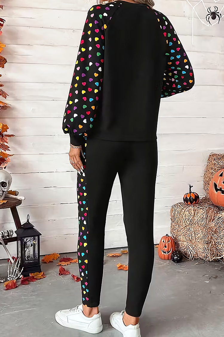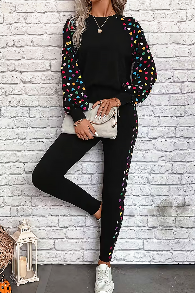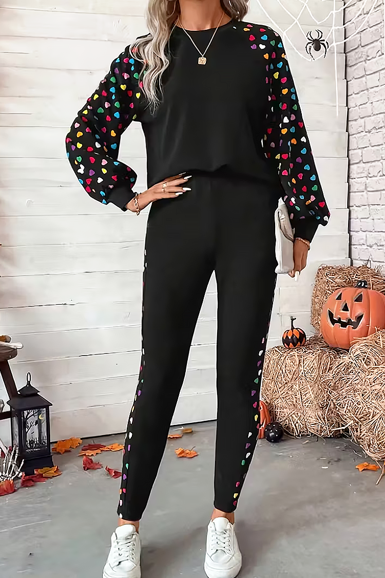 • Bluza ima udoban kroj i efektan dezen na rukavima, a pantalone imaju visok struk i uske nogavice.