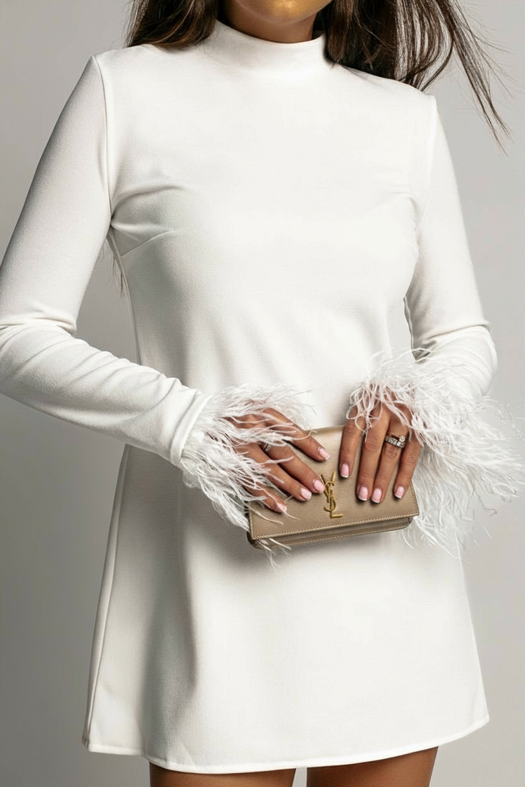 • Stilska haljina efektnog dizajna u beloj boji, pogodna za posebne prilike.