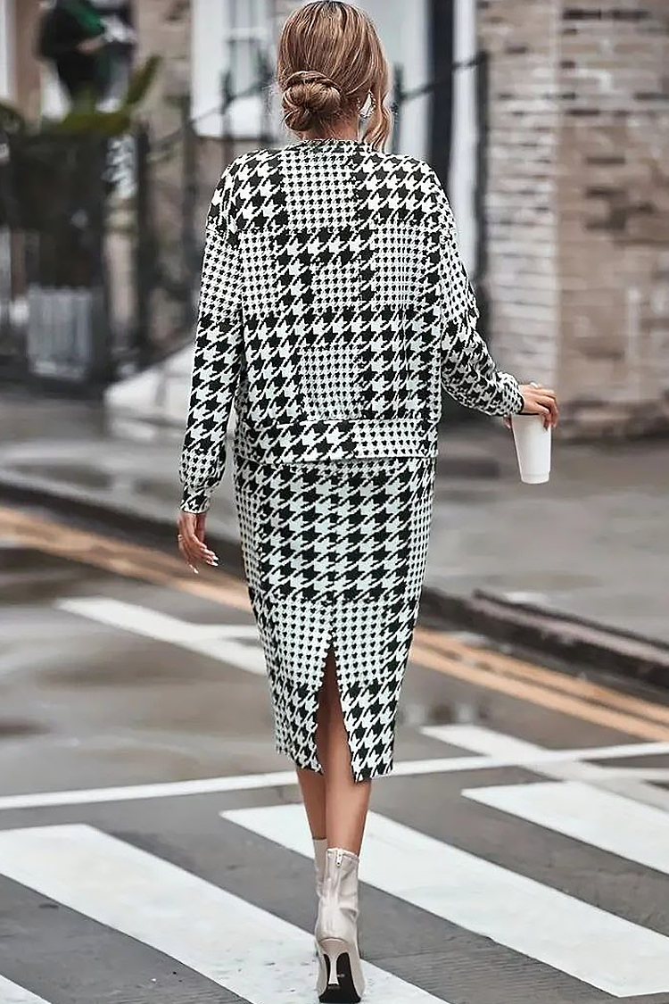 - Bluza ima klasičan udoban kroj, a suknja je midi dužine i ima seksi šlic.