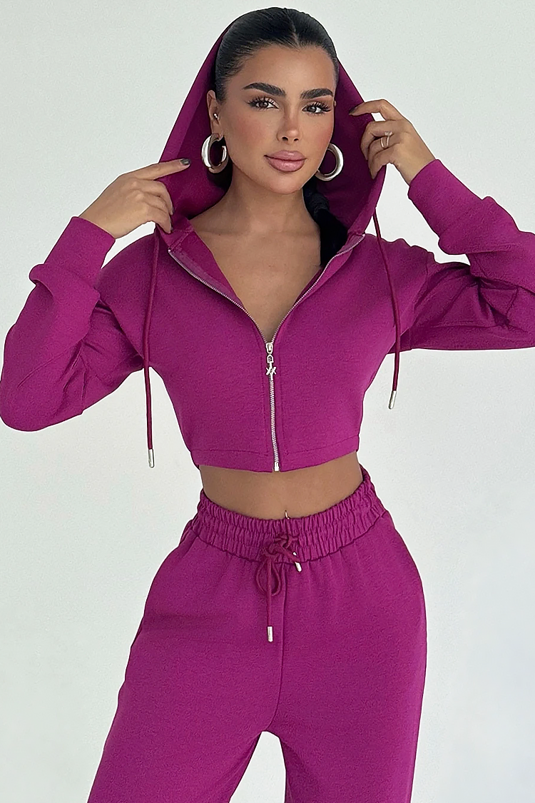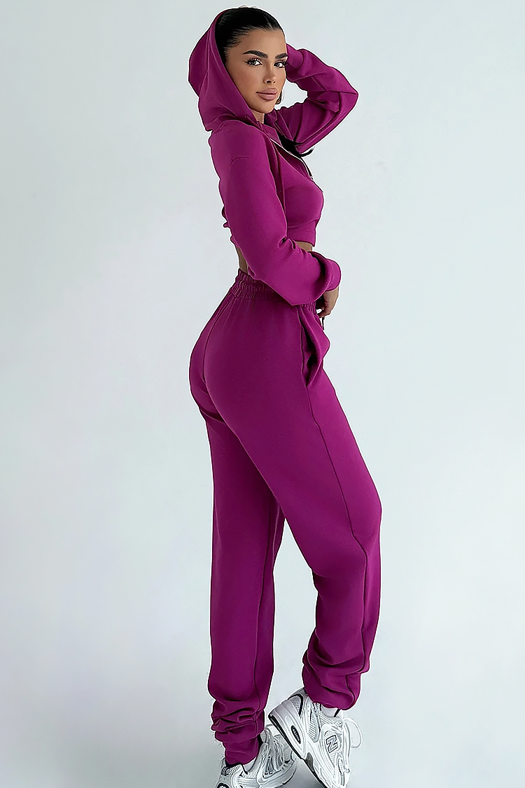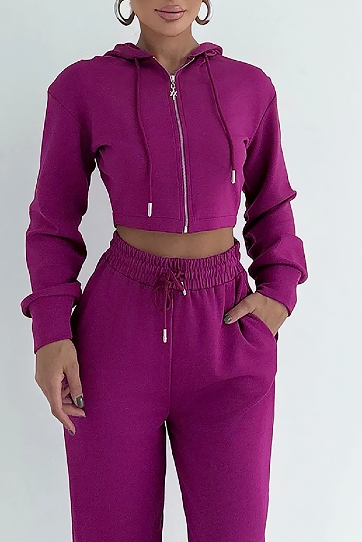 - Svakodnevni ženski dvodelni komplet sa jednobojnim dezenom.