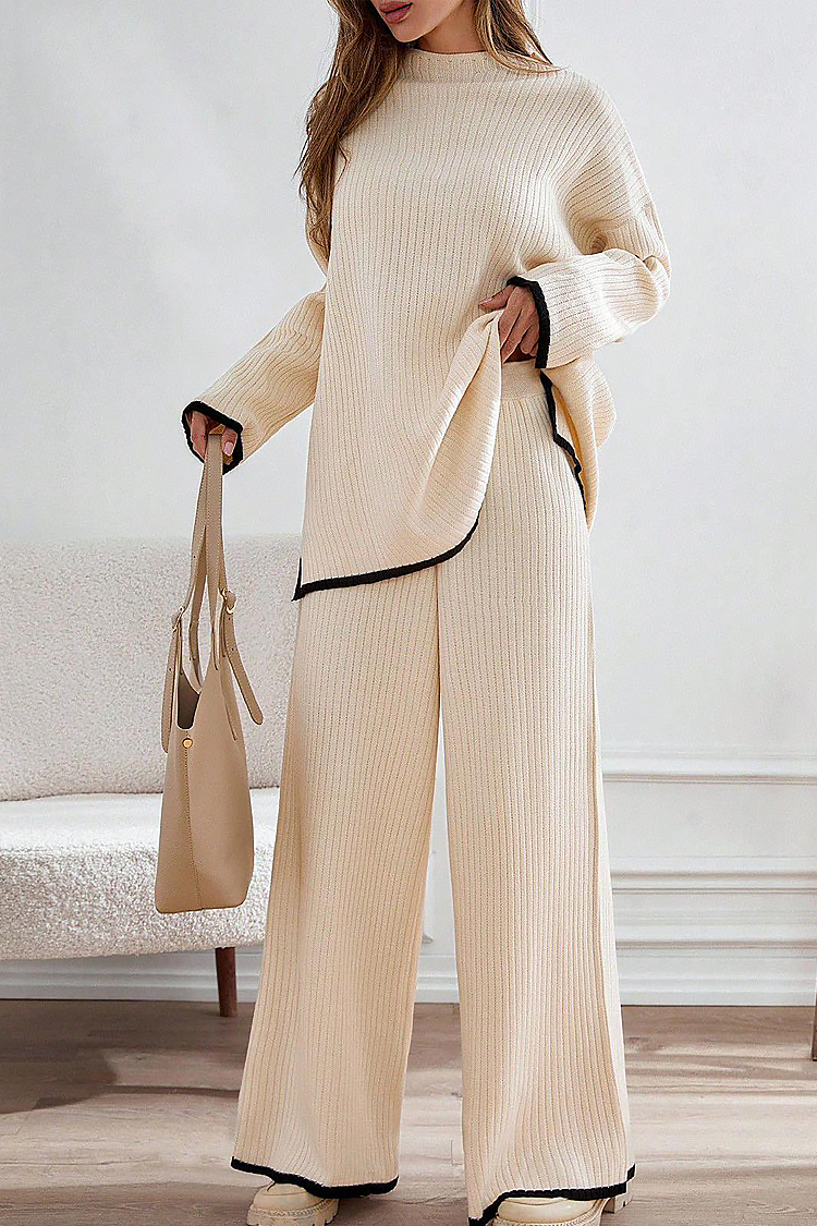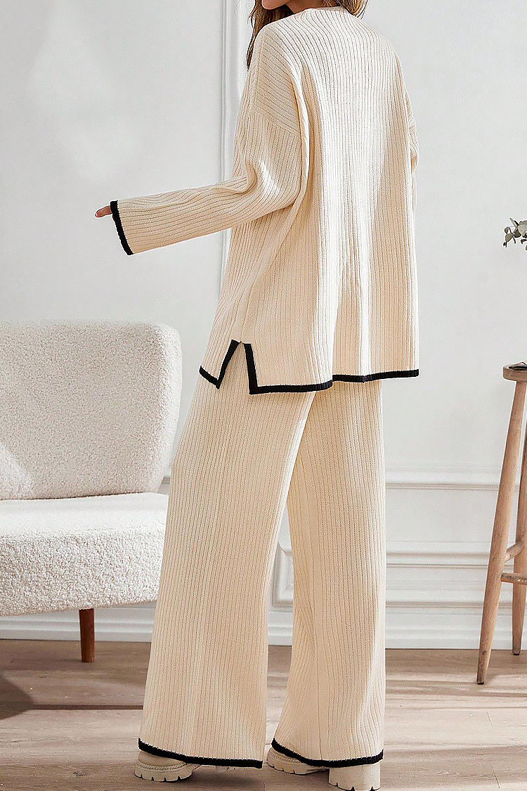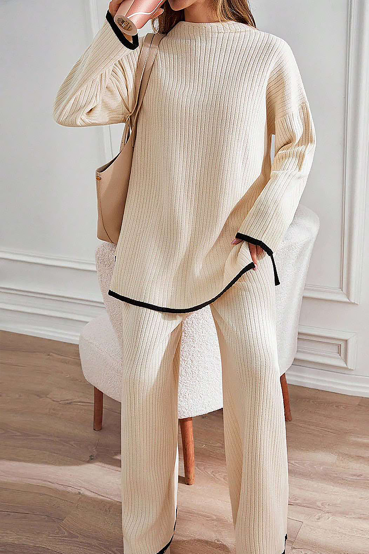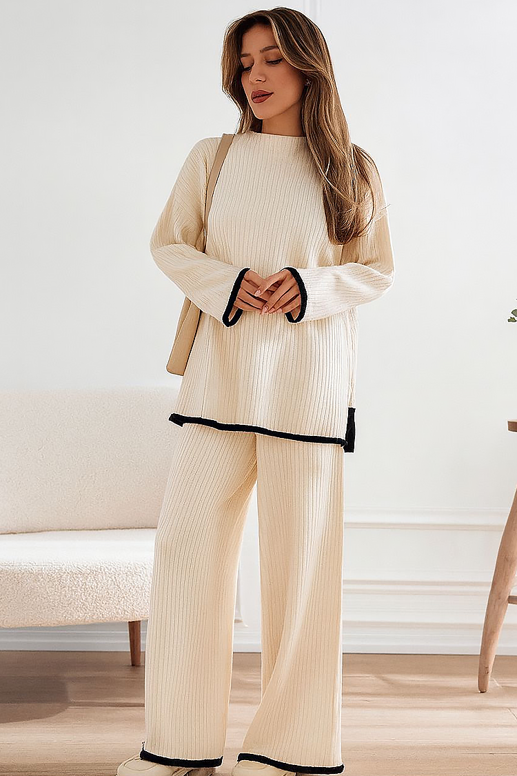 - Džemper ima udoban kroj i klasičan dekolte, a pantalone imaju visok i elastičan struk.