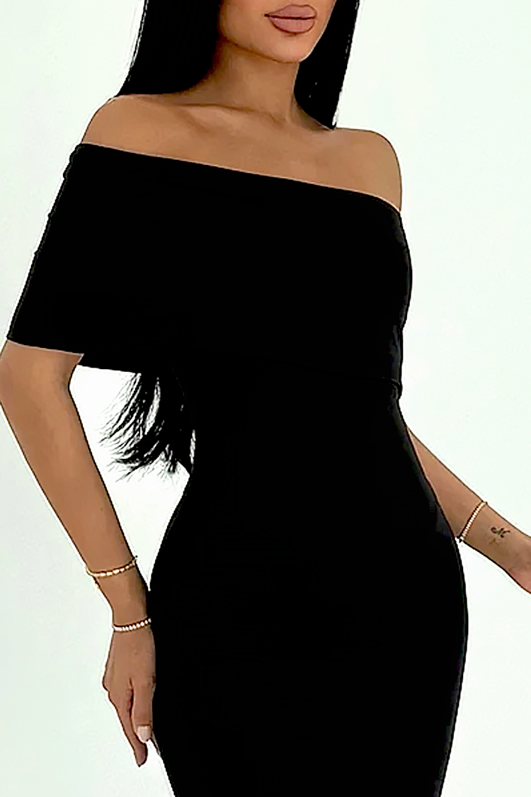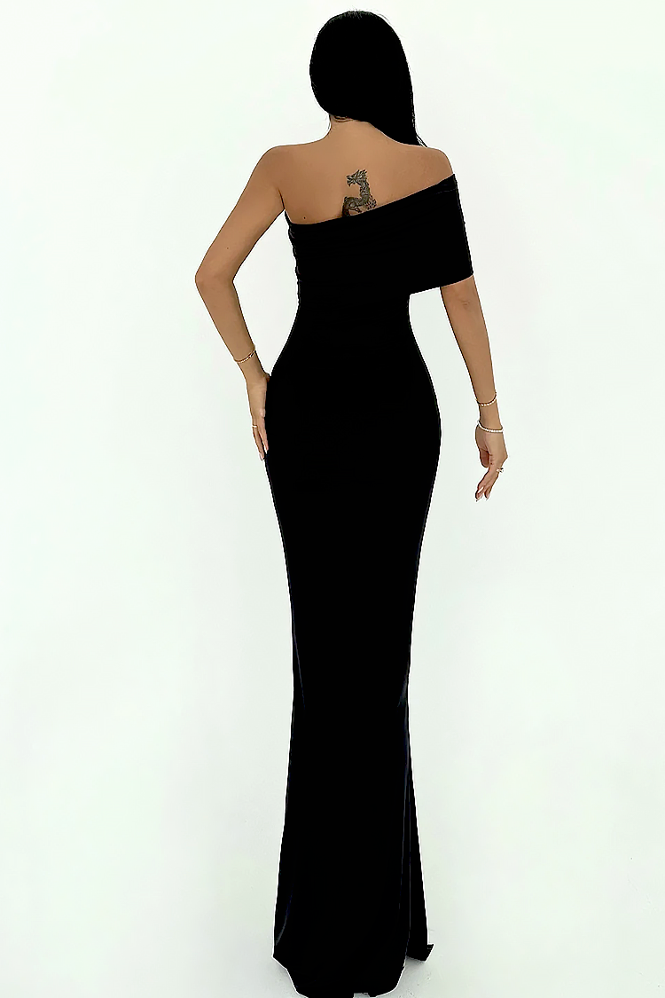 • Model ima uski kroj, koji ističe figuru i efektan asimetrični dekolte.