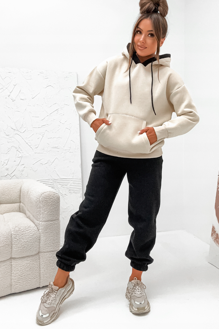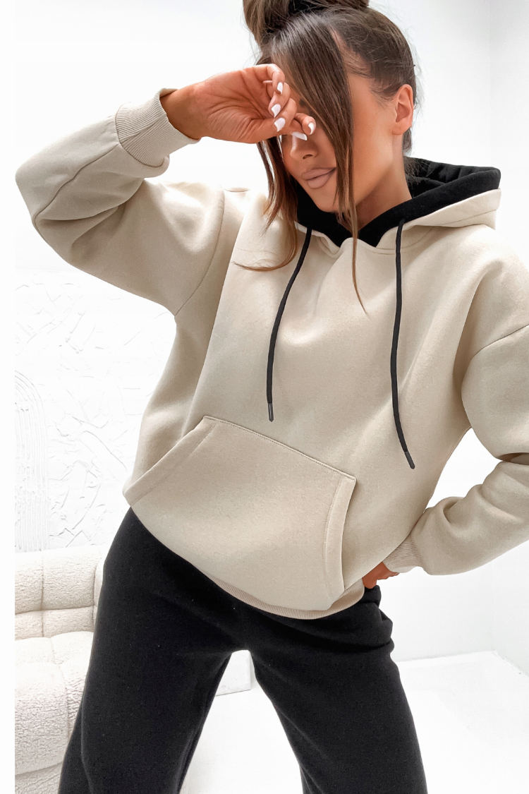 • Gornji deo je dukserica širokog kroja sa kapuljačom.