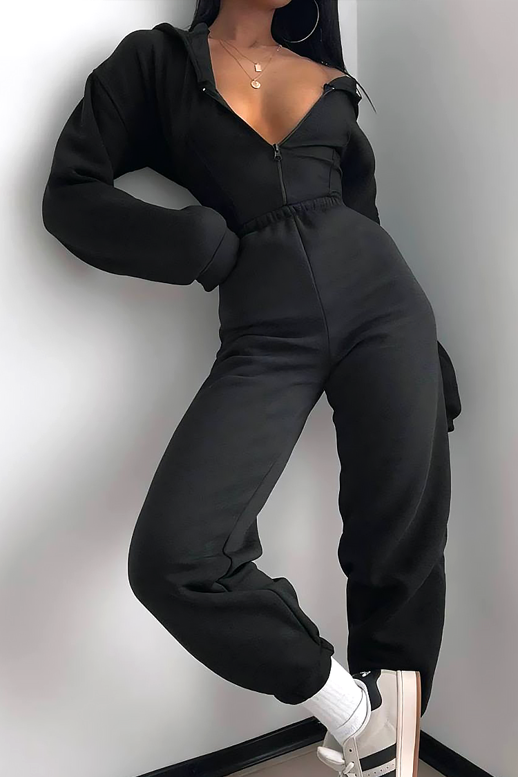 - Ženski kombinezon sa jednobojnim dezenom i efektnim zakopčavanjem, pogodan za svakodnevno nošenje.