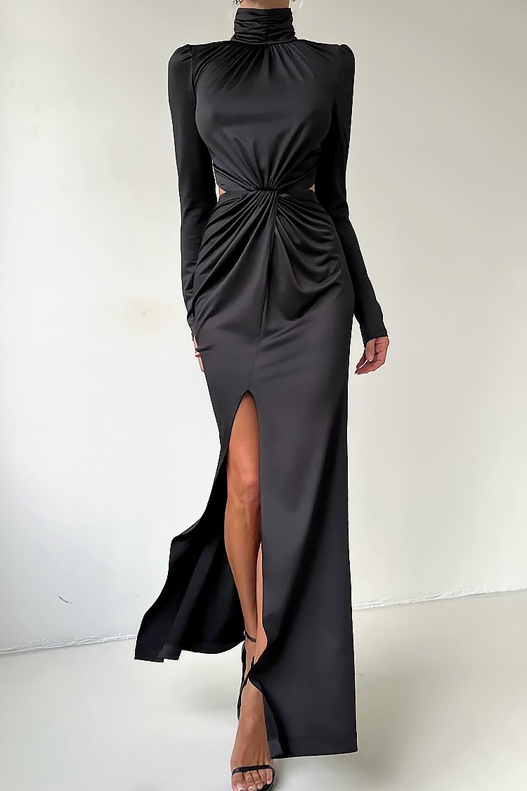 • Model ima visoku kragnu, efektan šlic i izrez na leđima.