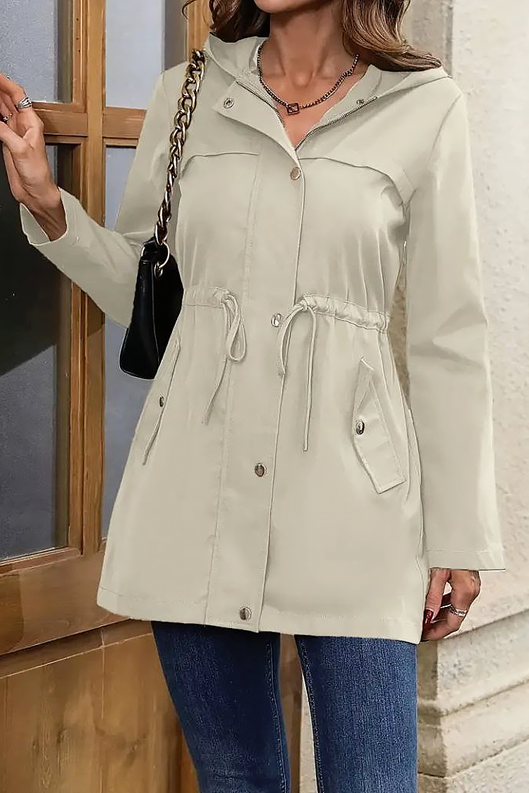 - Model ima udoban kroj, kapuljaču, vezice u struku, dugmad i džepove.