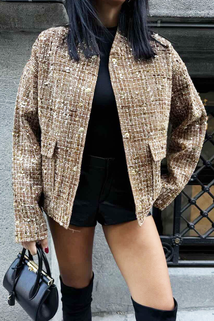 • Model ima slobodan kroj, bočne džepove i zakopčavanje na dugmad napred.