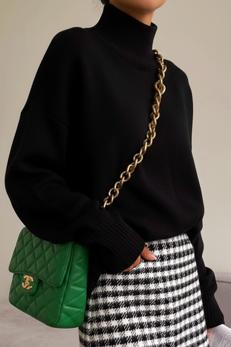 • Sa slobodnim krojem koji odgovara svakoj figuri i visokom kragnom.