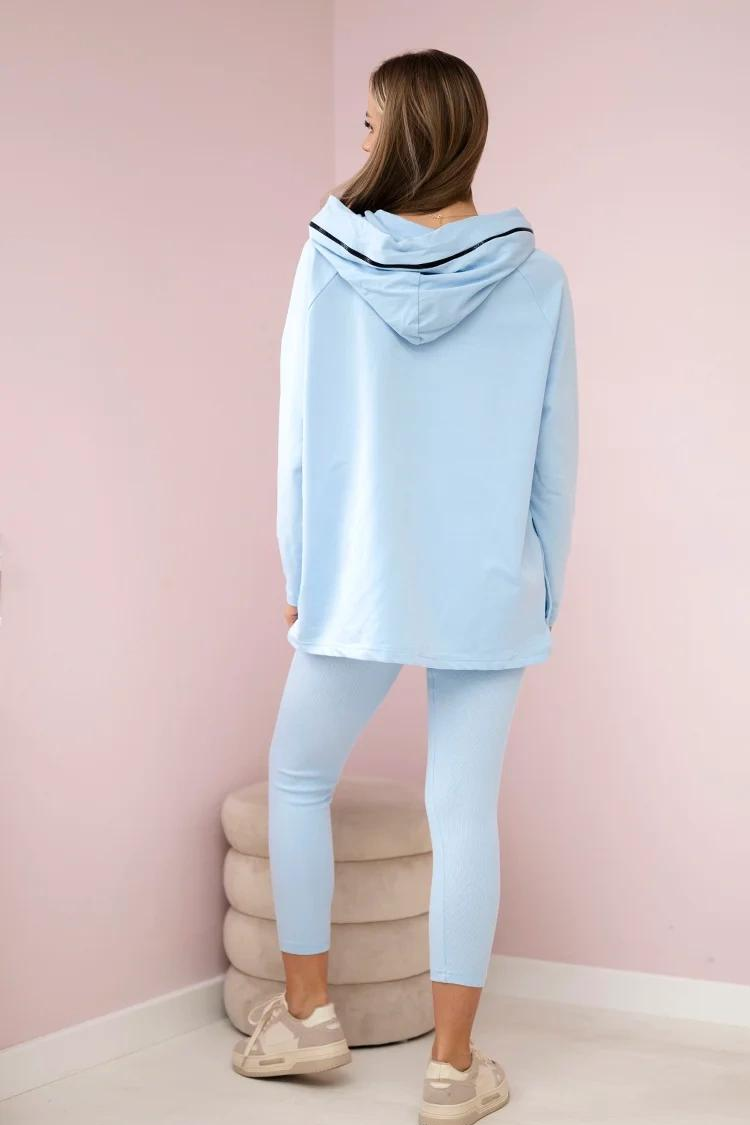 - Dukserica ima duge rukave, oversize kroj i kapuljaču sa rajsferšlusom, a helanke imaju lastiš i visok struk.