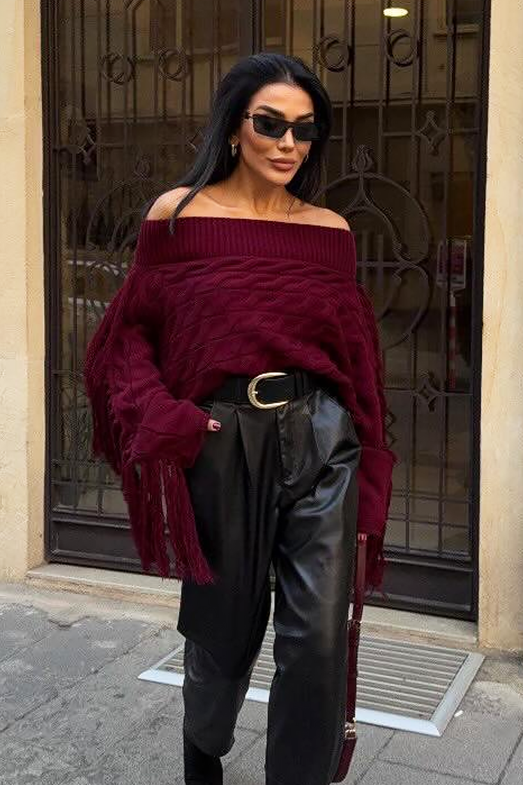 - Model ima oversize kroj, efektne rese oko rukava i gola ramena.