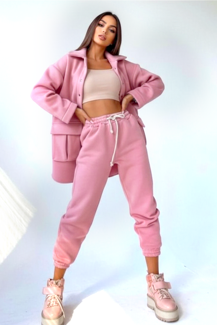 • Svakodnevni ženski dvodelni komplet sa jednobojnim dezenom.