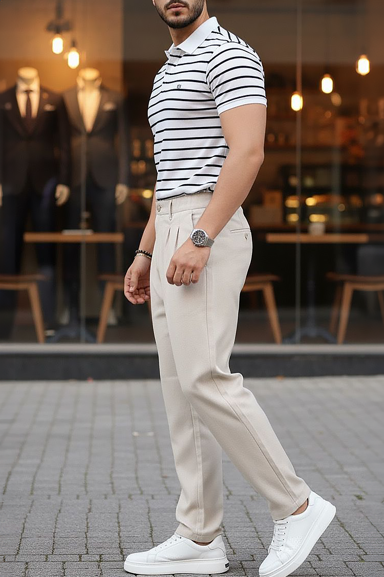 - Stilske muške pantalone u trendi boji sa čistim dizajnom, džepovima i ravnim nogavicama, sa kojima ćete privući sve poglede.