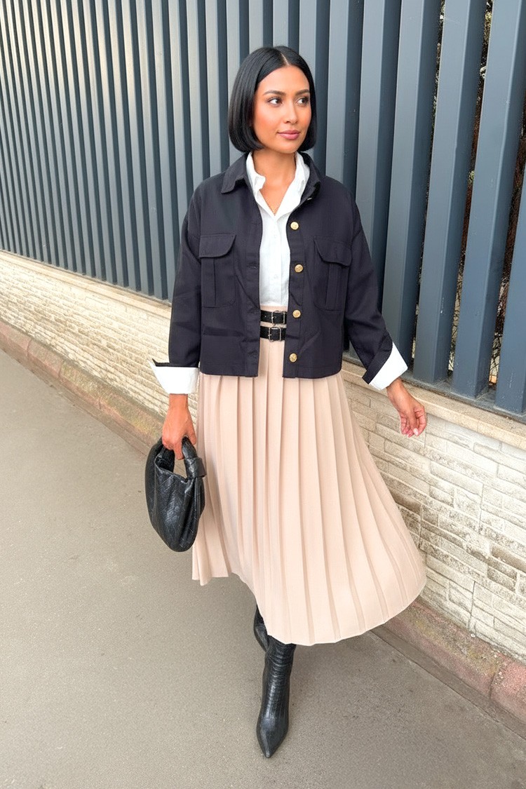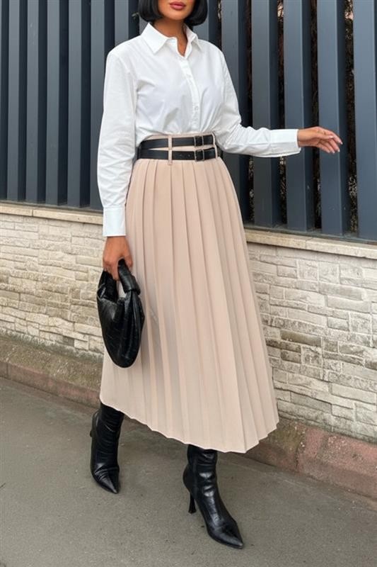 - Stilska i nežna midi suknja sa efektnim krojem, pogodna za razne modne prilike.