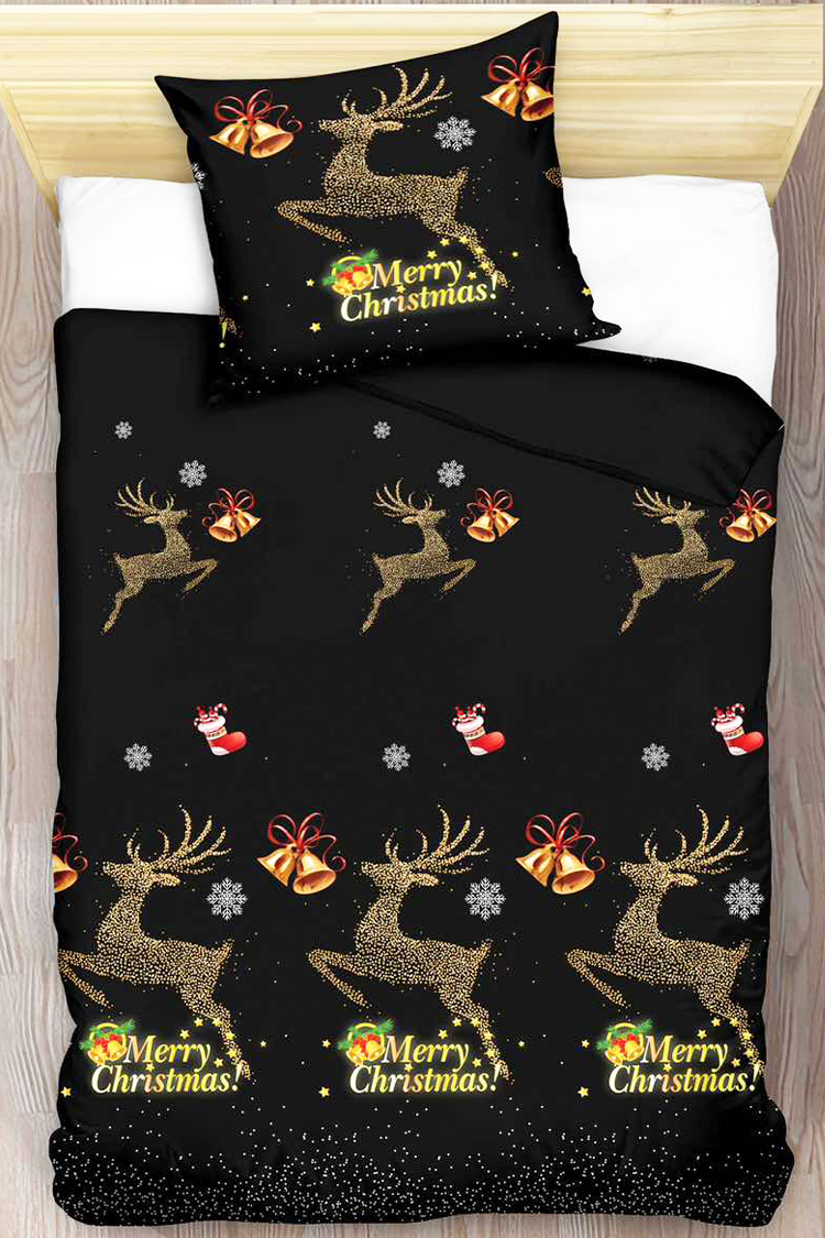 - Dvodelni komplet posteljine dimenzija 140x200 cm, izrađen od visokokvalitetnog pamučnog satena sa novogodišnjim motivima.