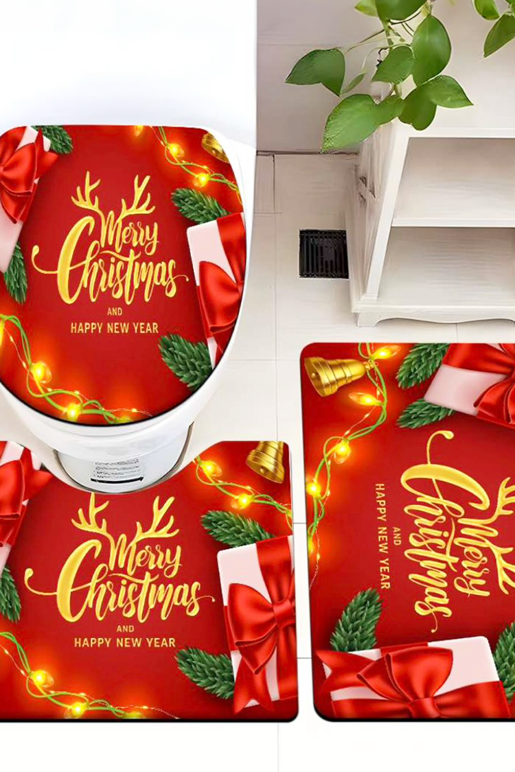 - Za vaš udobniji dom! Odličan kupatilski komplet od 3 dela sa novogodišnjim dezenom.