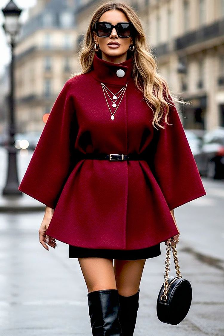 - Mekan i topao ženski pončo slobodnog kroja i udobnog dizajna, pogodan za svakodnevni život.