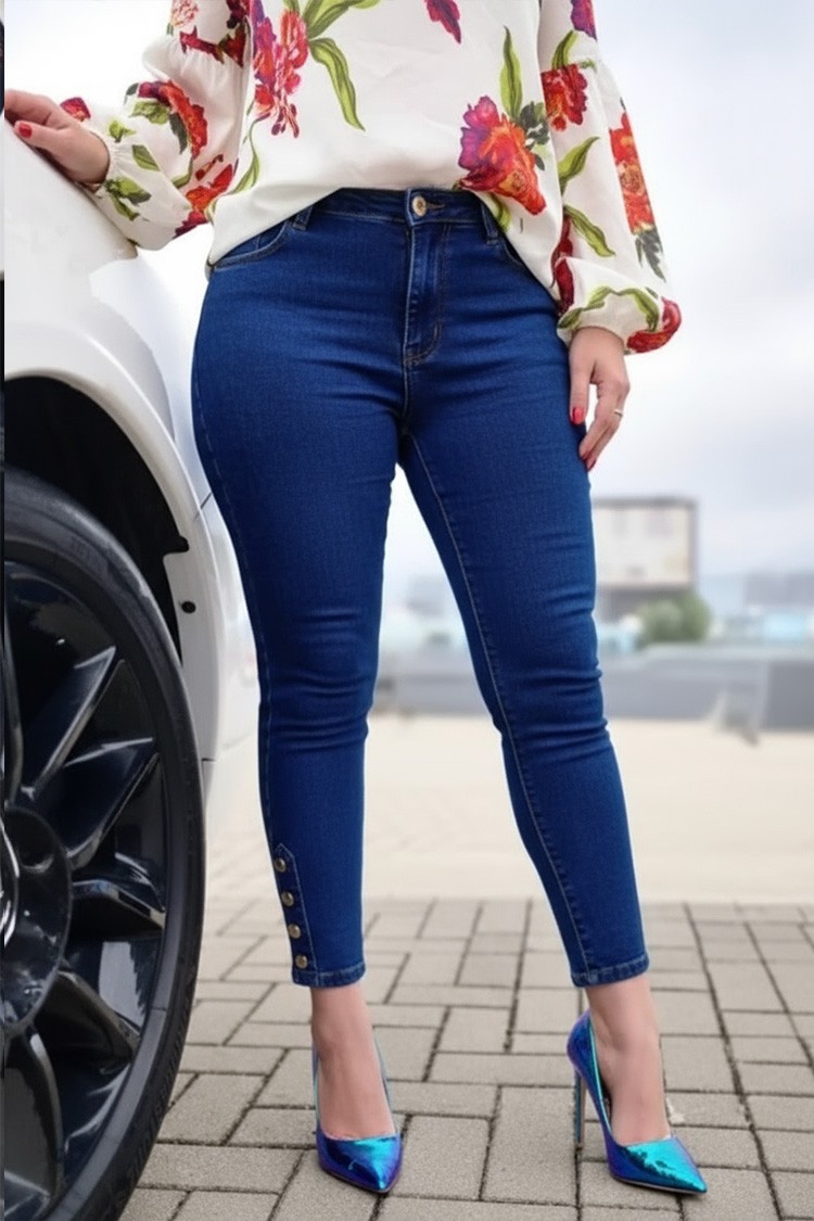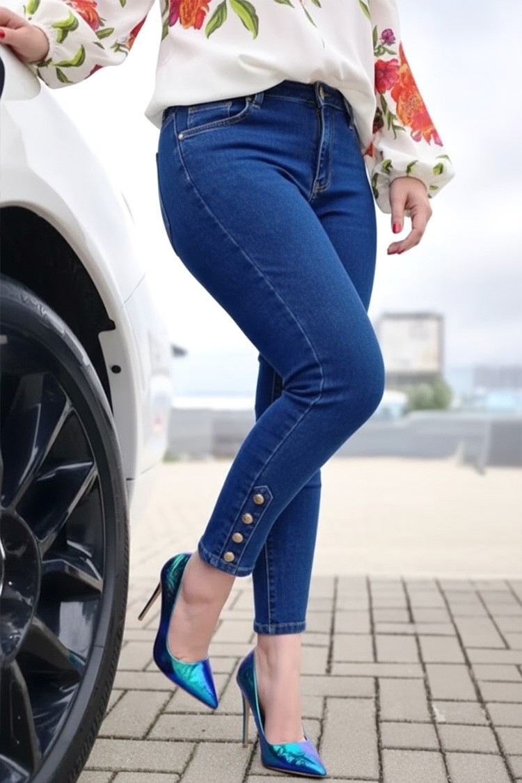 - Model ima visok, elastičan struk i precizan kroj koji ističe figuru.