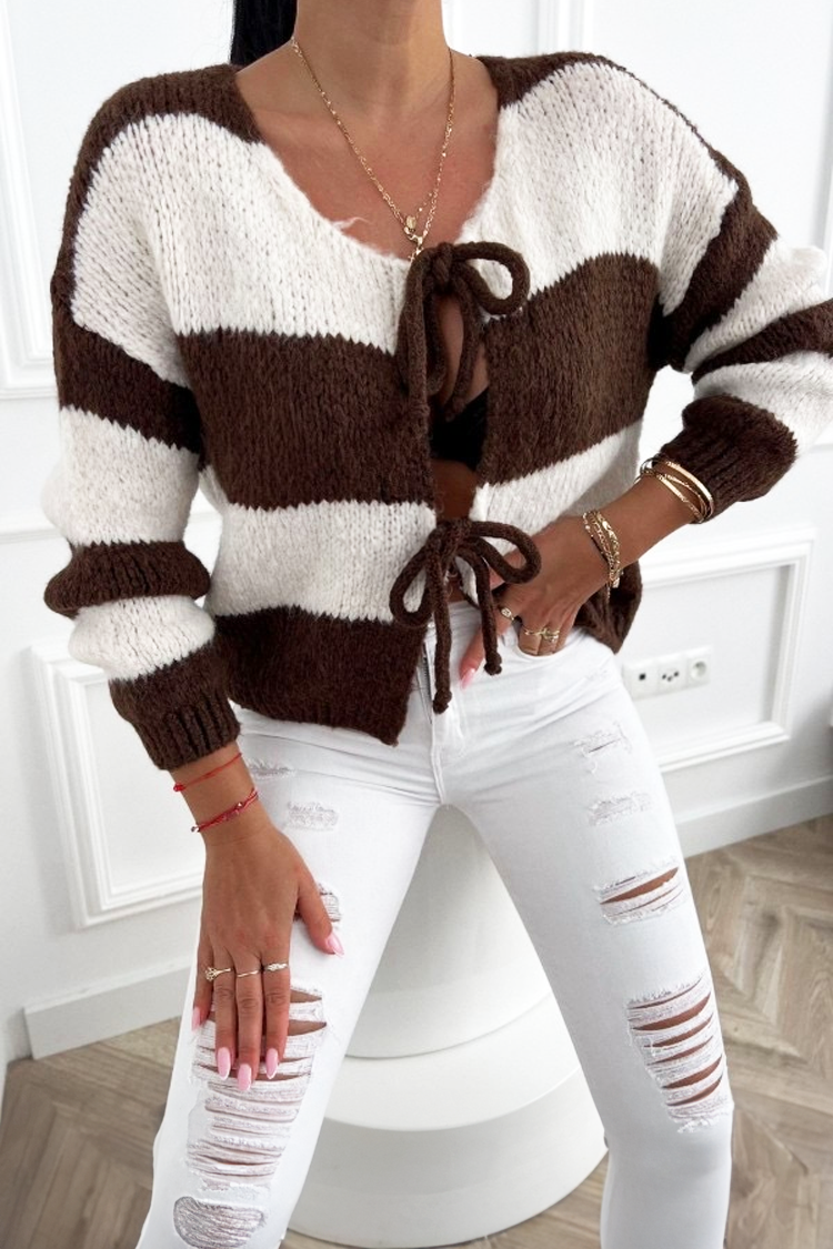- Model ima duge rukave i efektne mašne na prednjoj strani.