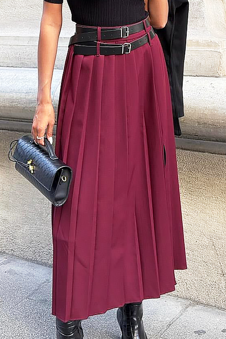- Model ima midi dužinu, visok struk i seksi šlic. Suknja dolazi sa dva crna kaiša.