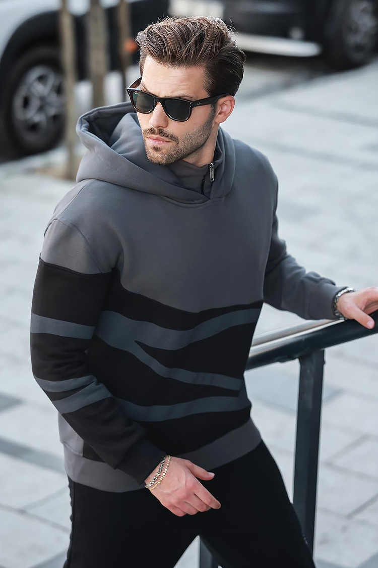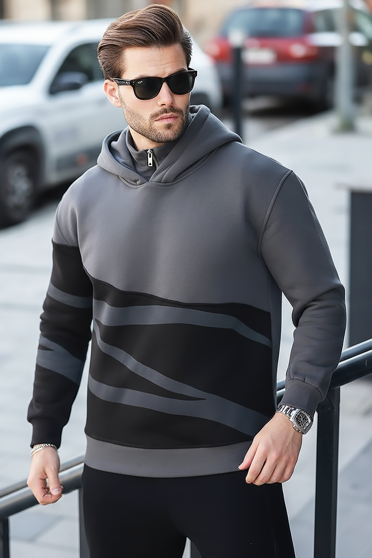 - Sportsko-ležerna muška dukserica sa rajsferšlusom, kapuljačom i efektnim detaljem.